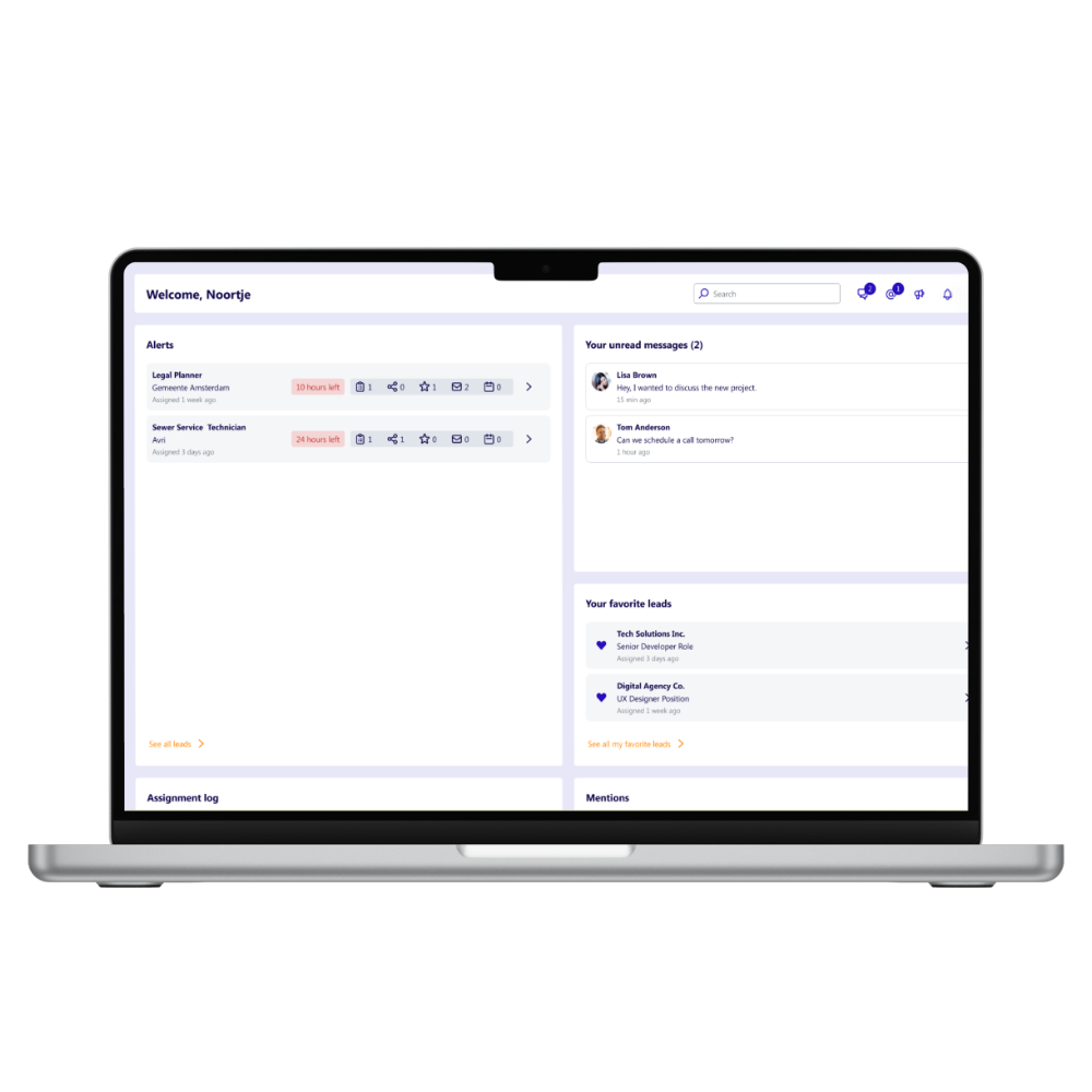 Je ziet alleen opdrachten die passen bij jouw profiel, zodat je tijd besteedt aan gesprekken die ertoe doen en met vertrouwen kunt doorgaan.